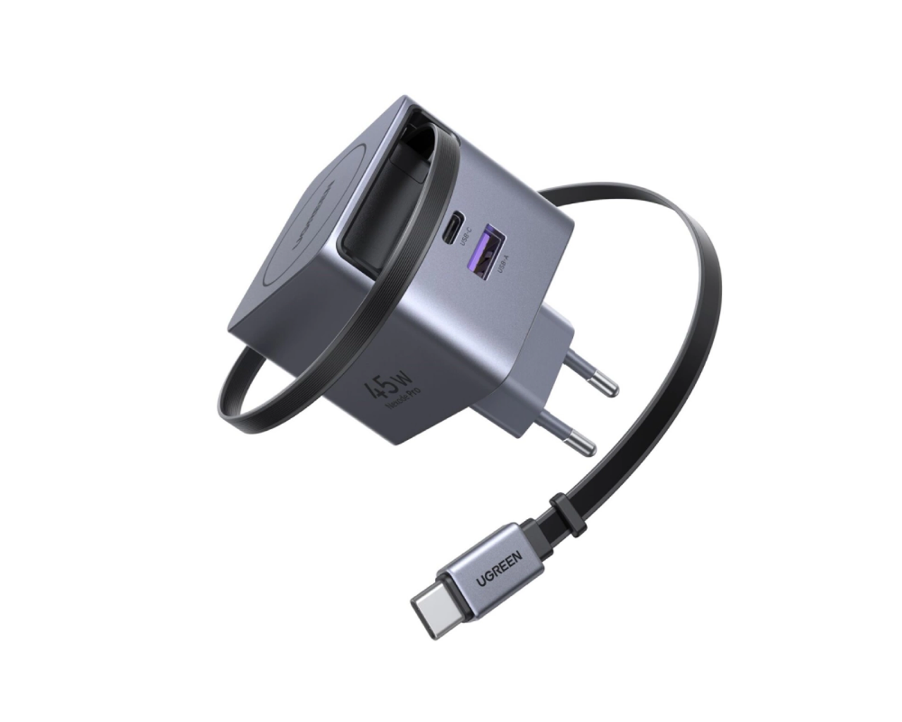 UGREEN 45W GaN USB-C Charger – 3-Port Fast Charging Adapter with Retractable USB-C Cable | X614 65822
