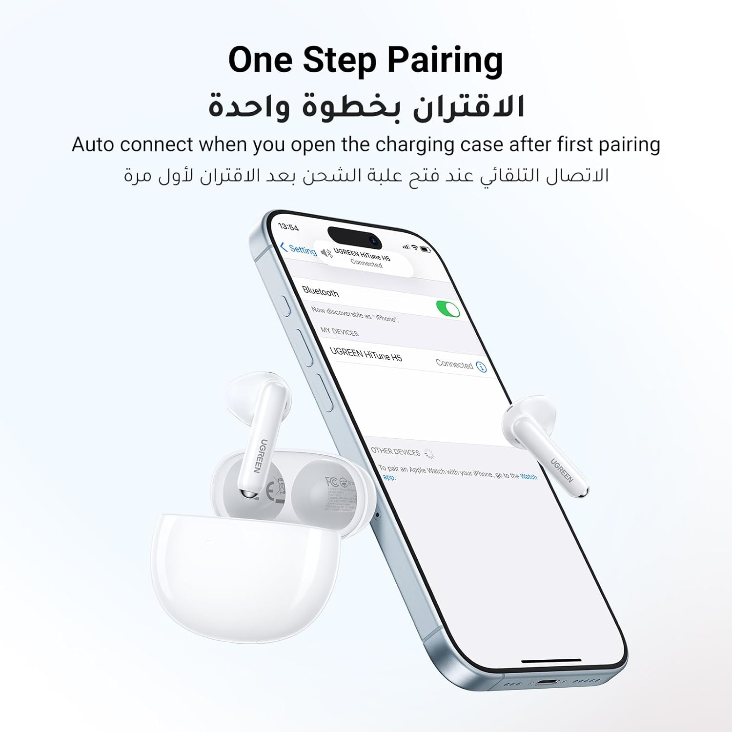 UGREEN HiTune H5 Bluetooth 5.3 Wireless Earbuds, Semi-In-Ear Headphones, 4 Microphones