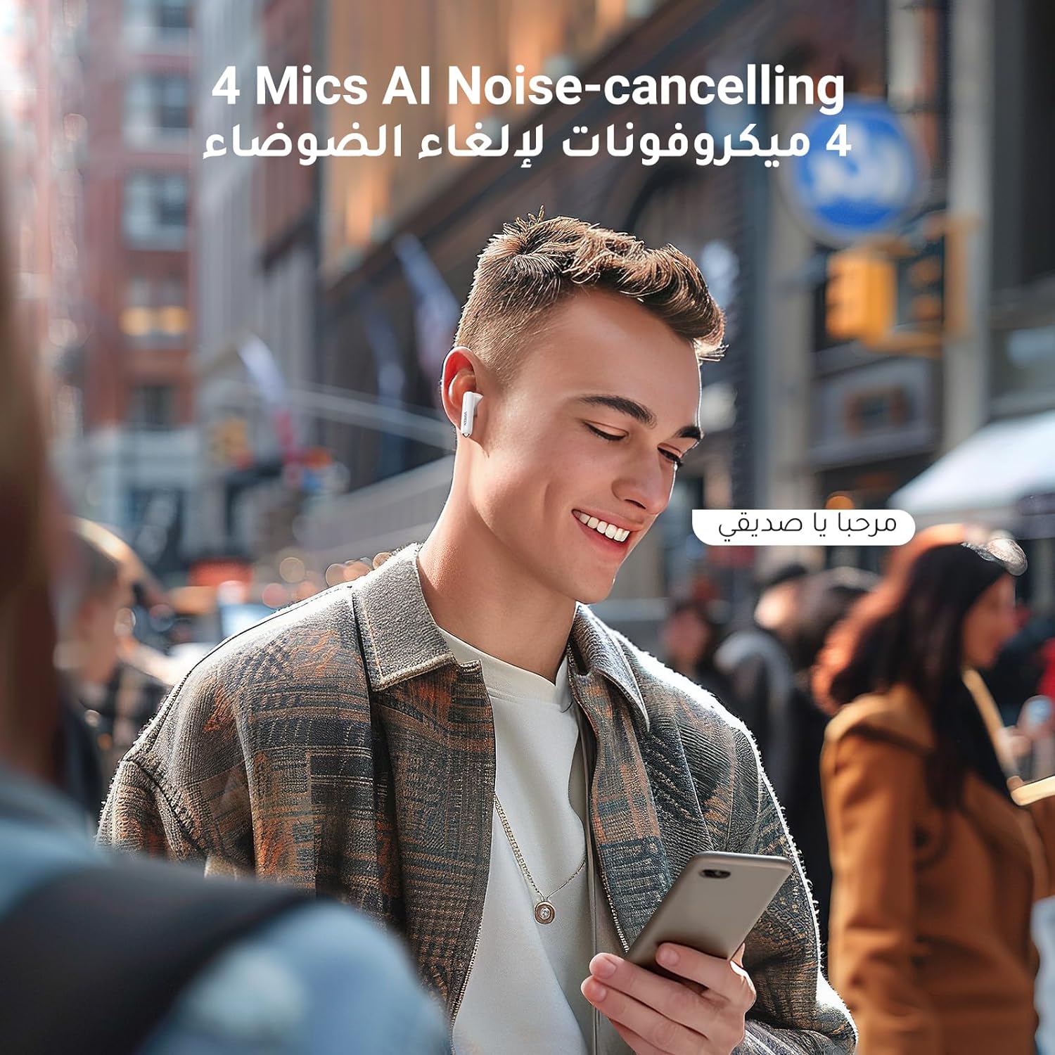 - 4 Mic Design, Effective Noise Cancellation – Each of the two earbuds is equipped with a main and auxiliary microphone, minimizing noise and allowing you to hear the clear sound of a phone call. Used to pick up sounds and answer calls, the main mic of the in-ear headphones provides clearer voice calls. Designed with patented [windproof] structure, the auxiliary mic of the wireless headphones [effectively reduce the impact of wind noise].