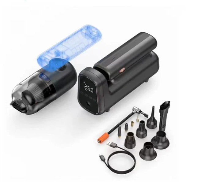 1. 5 in 1 multi-function vacuum cleaner, can suck, can blow, air pump, flashlight, car vacuum cleaner.
